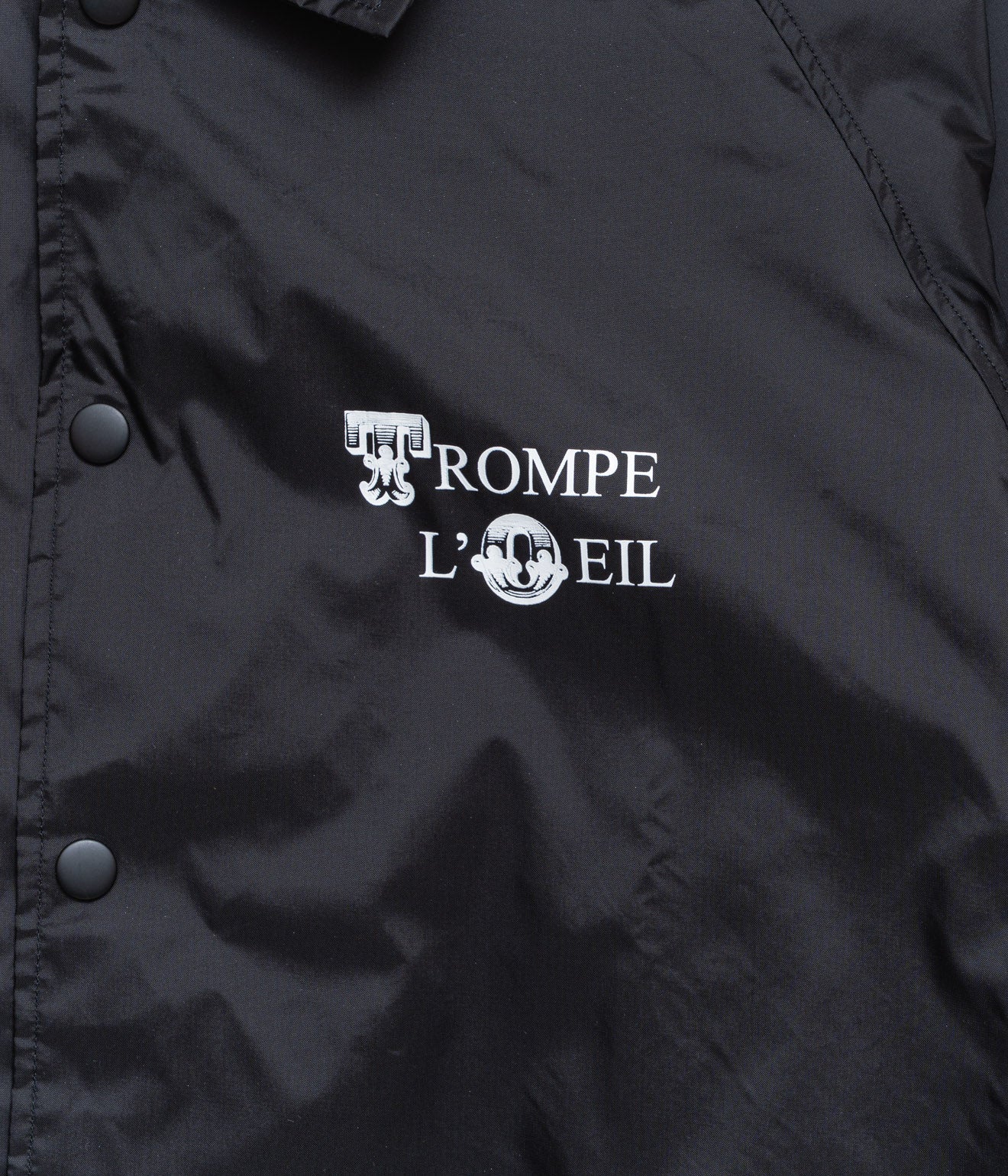 ナイロン素材のコーチジャケット。騙し絵をモチーフにしたオリジナルプリント。